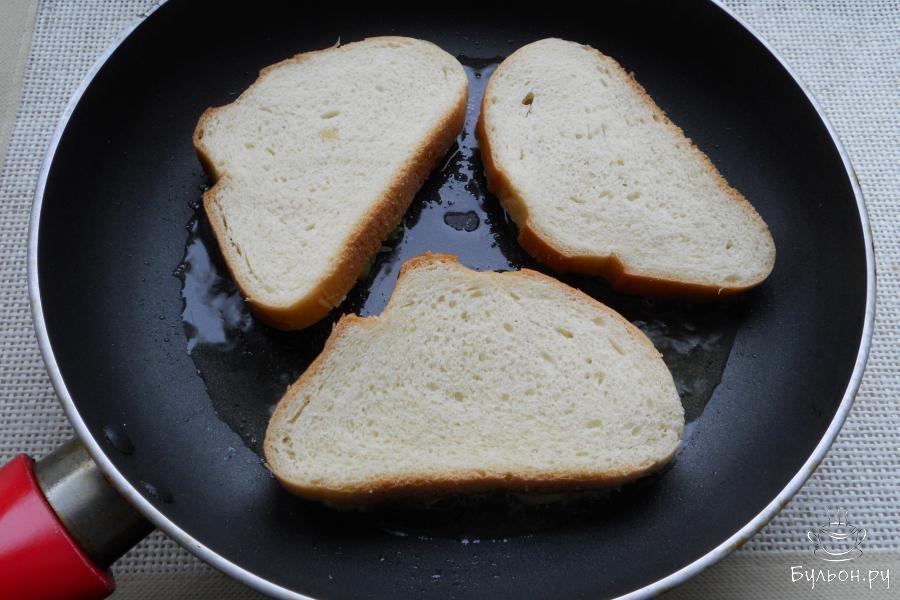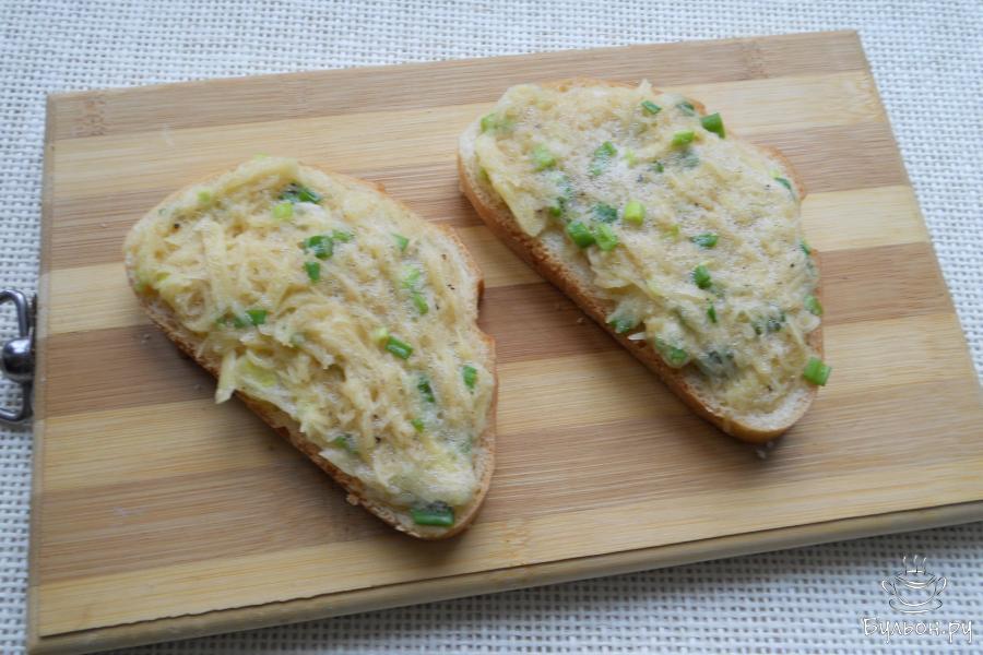 4. Белый хлеб или батон порезать на ломти. На каждый - щедро выкладывать подготовленную картофельную массу, немного придавливая ее.