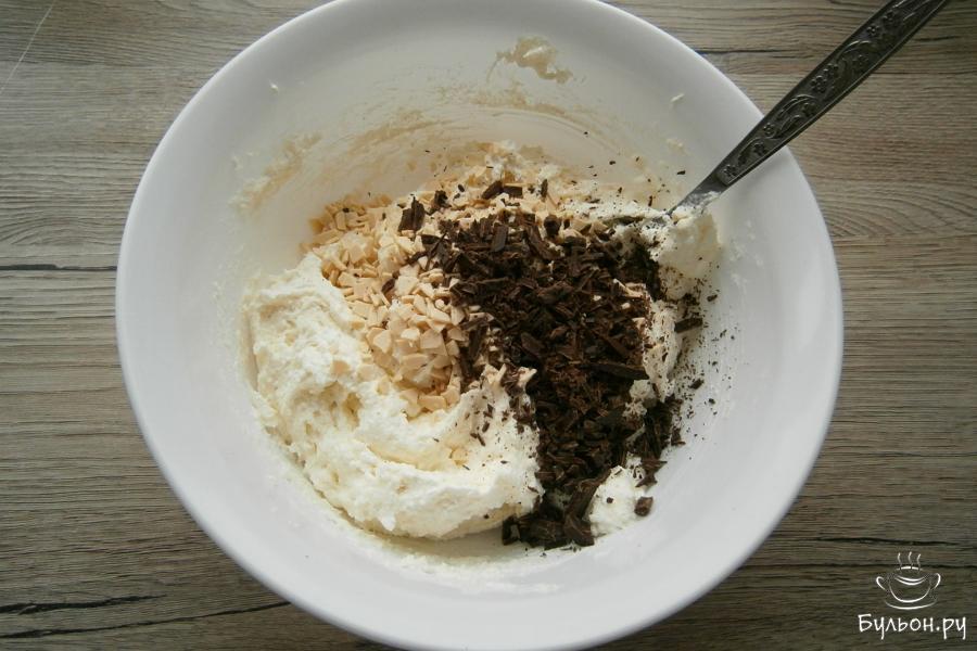 4. Добавить в массу белый шоколад и 40 г черного шоколада - порубить ножом или натереть. Белый шоколад у меня - осколки.