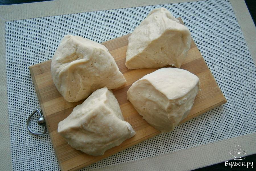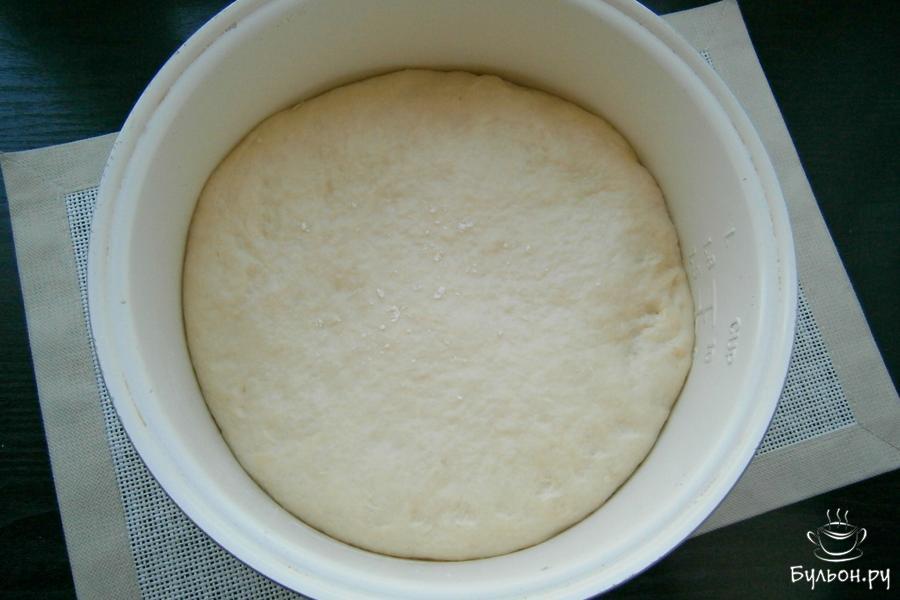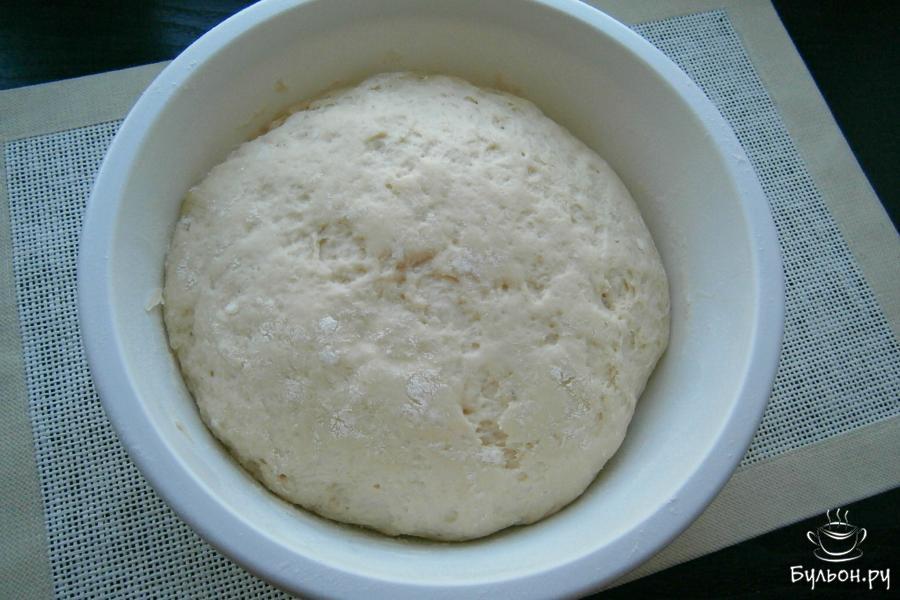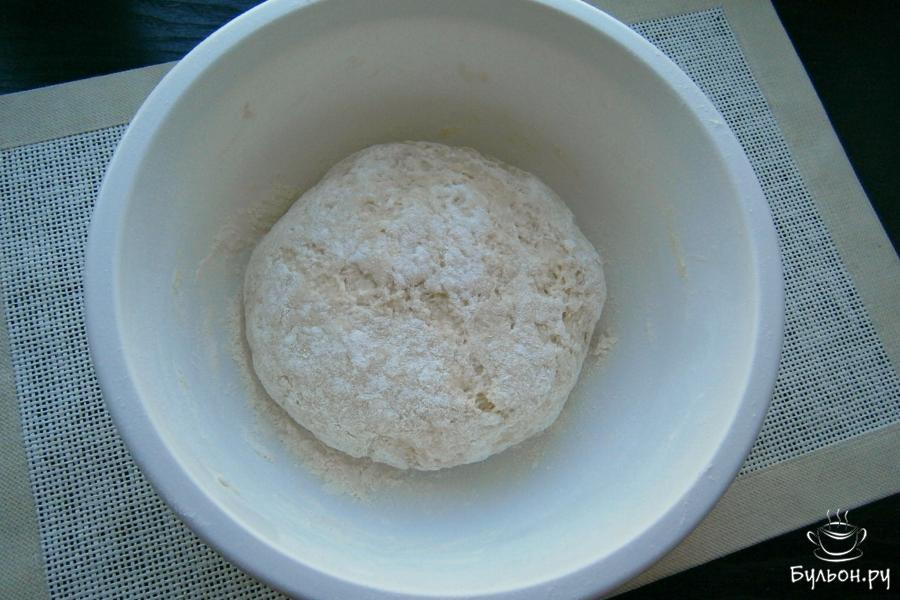 3. Замесить довольно плотное, но мягкое, не тугое тесто. Накрыть его пленкой и оставить в тепле на один час.
