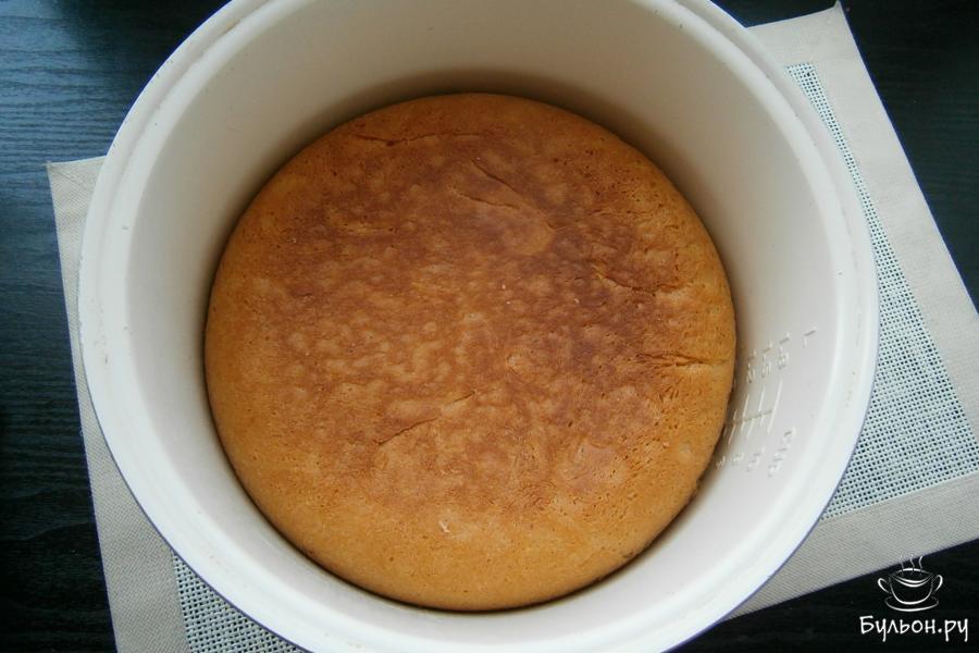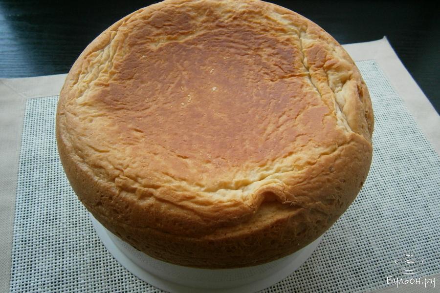12. Далее, выставить режим Выпечка, время - 75 минут. Затем, пирог перевернуть с помощью чаши для варки на пару и готовить на том же режиме еще 25 минут. В общей сложности у меня пирог выпекался 1 час 40 мин.
