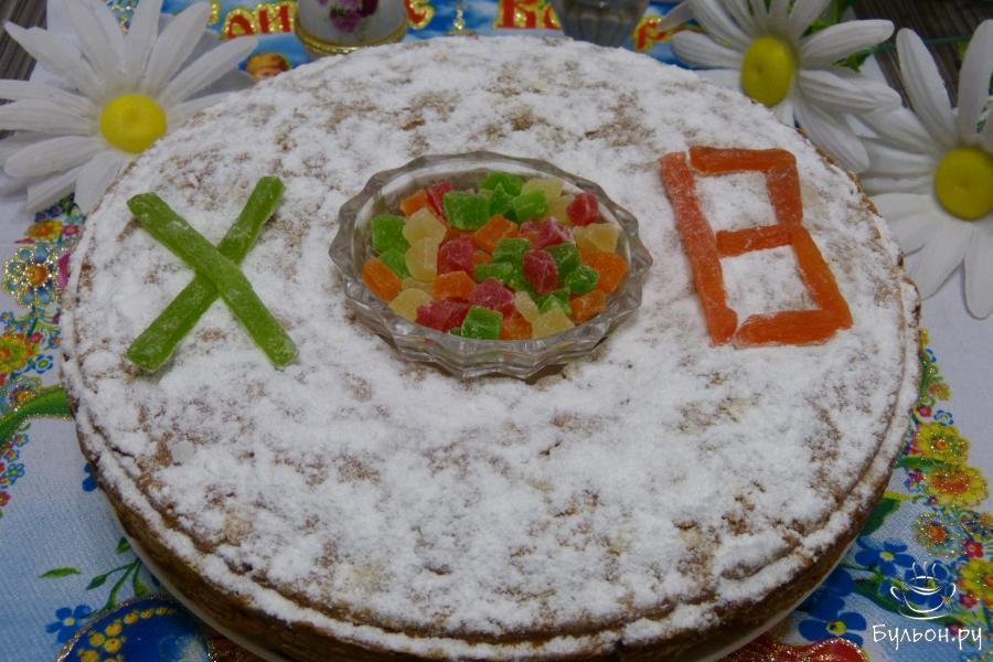 9. Дополнительно украсить цукатами. Такой кекс лучше готовить с вечера, за ночь он настоится и пропитается ароматом изюма и сахарной пудры. А на утро будет готов для разговения Пасхальный кекс. Приятного аппетита и с праздником всех вас.
