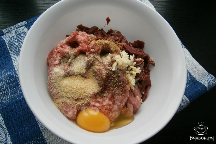 4. Влить 30 мл воды, желательно, ледяной и очень хорошо фарш перемешать и отбить. Мешать и отбивать нужно минут 5.