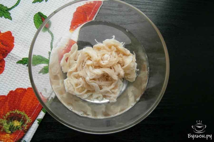 5. Кишки тонкие свиные замочить в чуть подкисленной уксусом воде на пол часа, далее, промыть кишки водой из крана, надевая их на гусак.