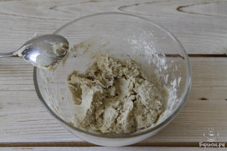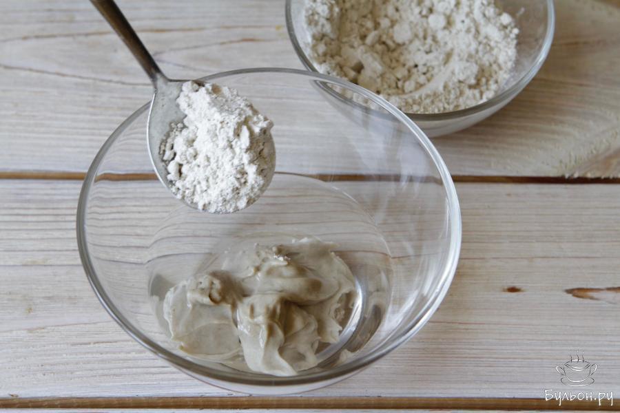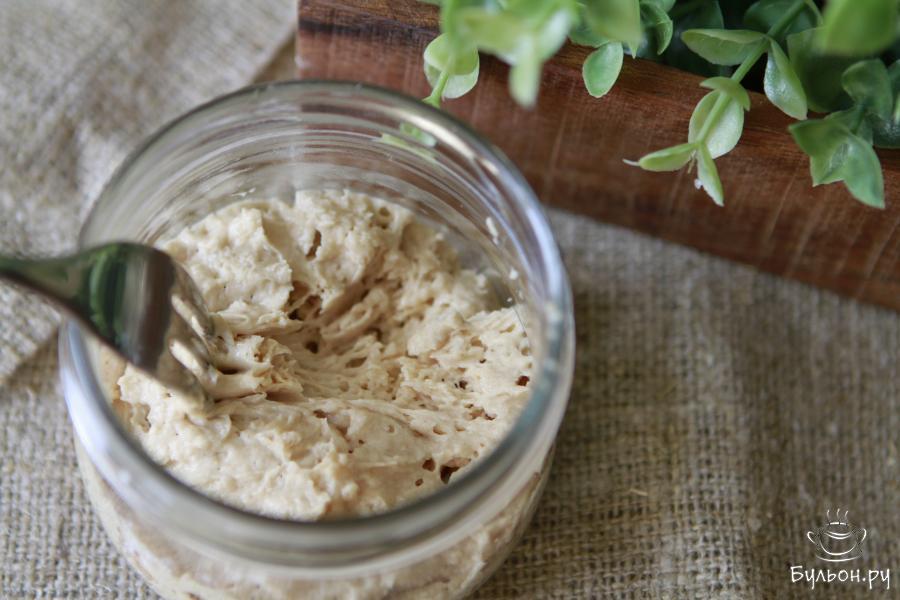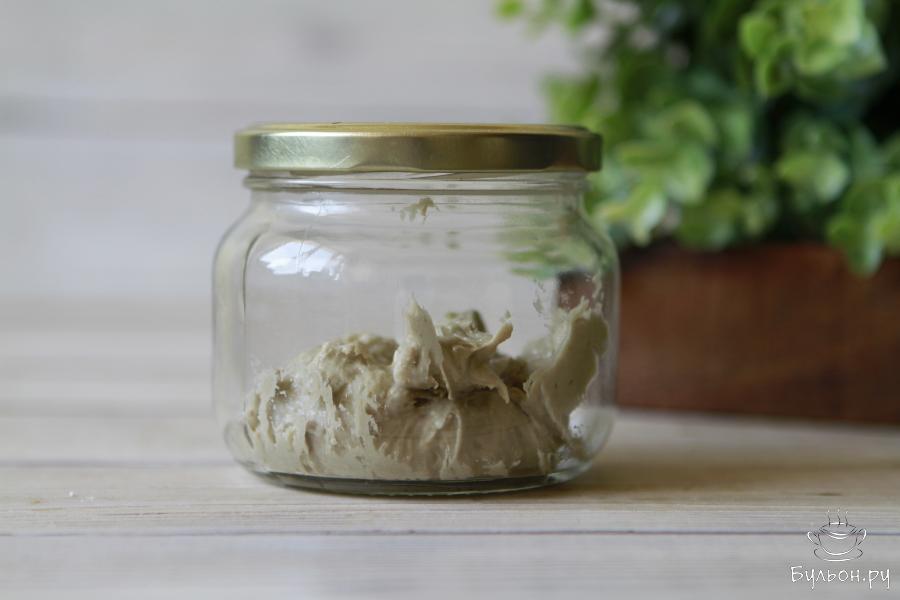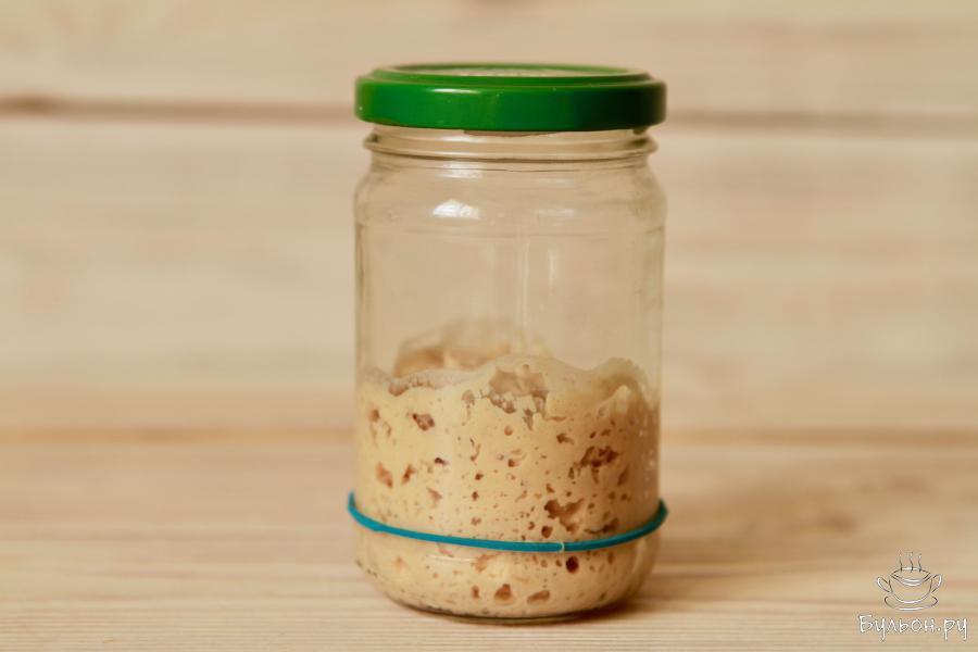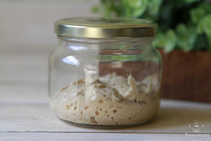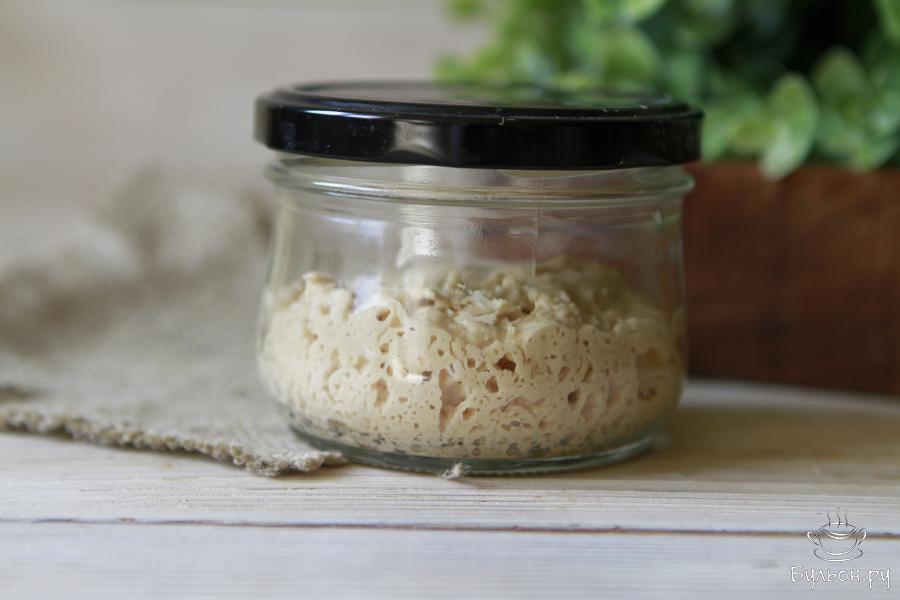 2. Смешать муку с водой. У вас получится вот такая густая масса. Убрать ее в банку, банку закрыть крышкой.