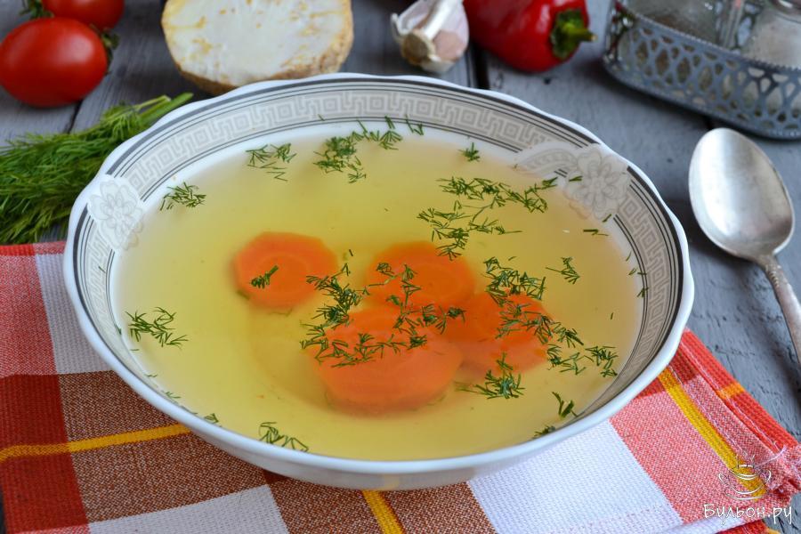 6. Затем, бульон процедить, овощи выбросить, так, как они уже отдали все свои полезные свойства. Бульон далее остудить и заморозить или использовать сразу для приготовления задуманного вами блюда. Приятного аппетита.