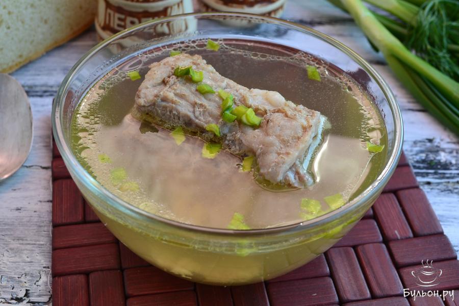 5. Готовый, ароматный мясной бульон процедить через несколько слоев марли, вынув предварительно мясо. Подать бульон, приготовленный из ассорти мяса можно подавать к столу с гренками и кусочком отваренного мяса. Или же, варить на бульоне суп или борщ. Бульон можно заморозить впрок.