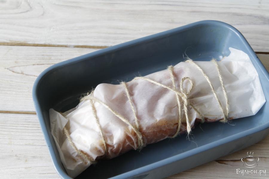 4. Перед тем как отправить филе индейки в духовку завернуть его в пергамент или фольгу для запекания. Запекать 40 минут при 180 градусах.