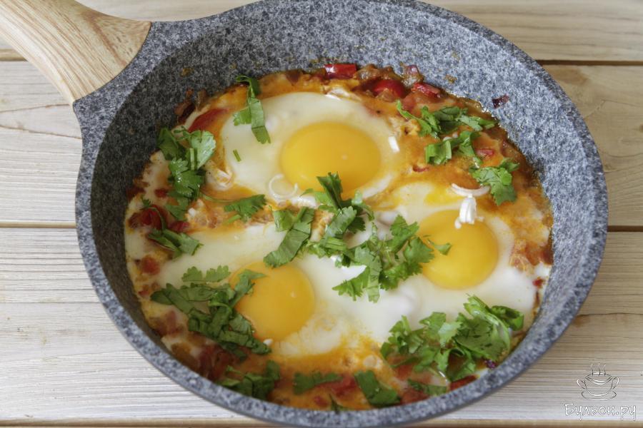Шакшука - это блюдо еврейской кухни, всеми нами любимая яичница. На мой взгляд, это один из самых простых и вкусных завтраков, который только придумали. Готовится она с добавлением помидор, лука, болгарского перца и специй. Чтобы блюдо получилось вкусным, тут главное правильно выбрать помидоры. Они должны быть мясистыми, сочными и очень сладкими. Яйца добавляют в самом конце, и, их главное не передержать. На выходе должна получиться глазунья в пряном томатном соусе.