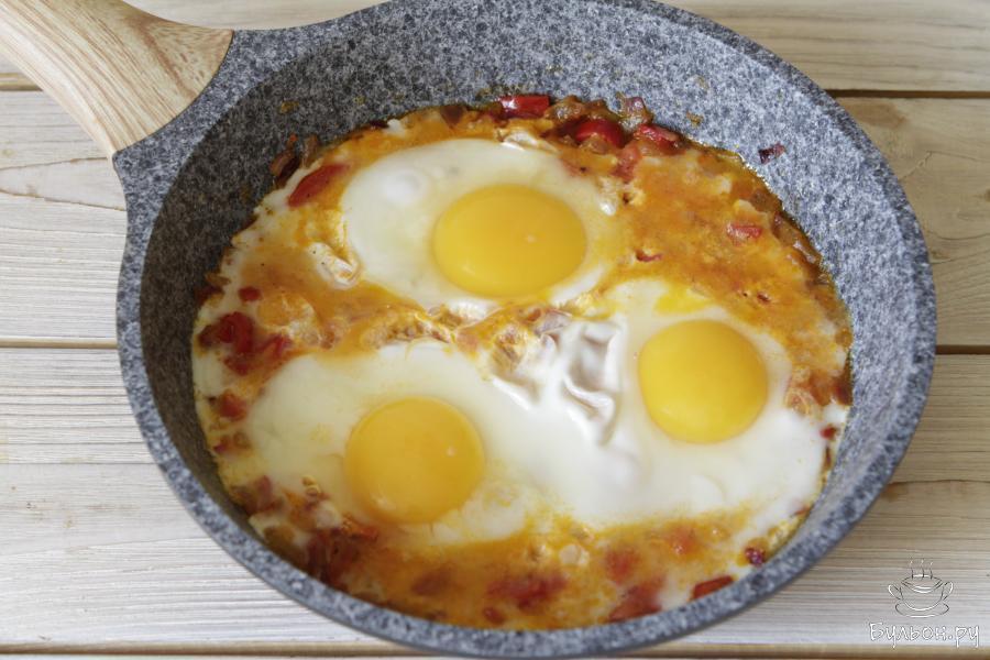 6. Убавляем огонь и готовим под крышкой еще пару минут. Важно не передержать, желток должен быть слегка жидковат.