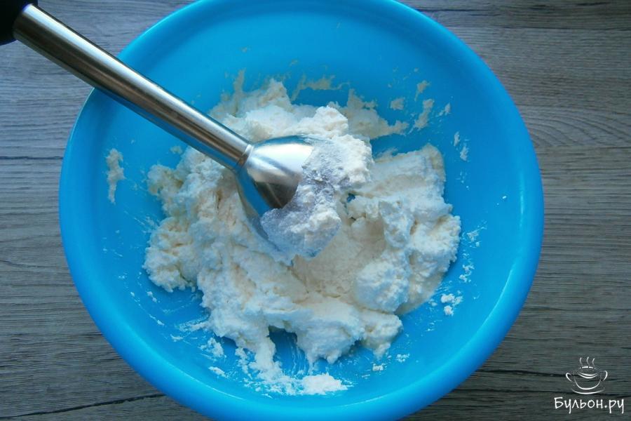 1. К творогу, желательно, домашнему обезжиренному добавить куриное яйцо, всыпать соль и сахарный песок.