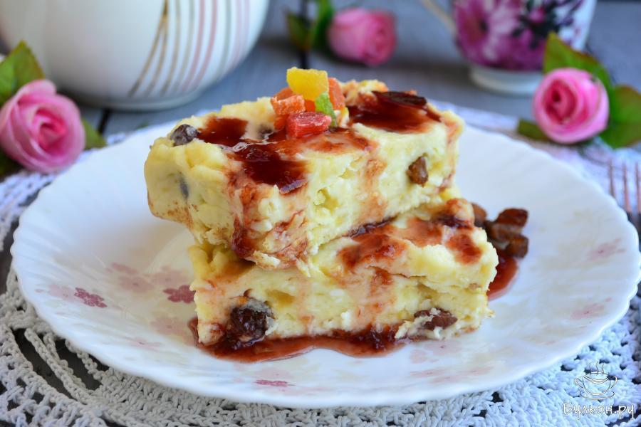 8. Подать творожную запеканку можно в теплом или охлажденном виде с вареньем или сметаной. Приятного аппетита.