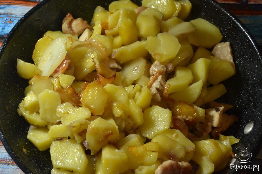 9. Жареная картошка с курицей на сале - это вполне самостоятельное блюдо. Но различные соусы соленья и маринады здесь будут конечно же очень кстати.