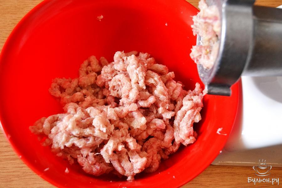 5. Можно пропустить мясо через мясорубку один раз. Я же предпочитаю делать это два раза. Фарш будет более нежным и однородным.