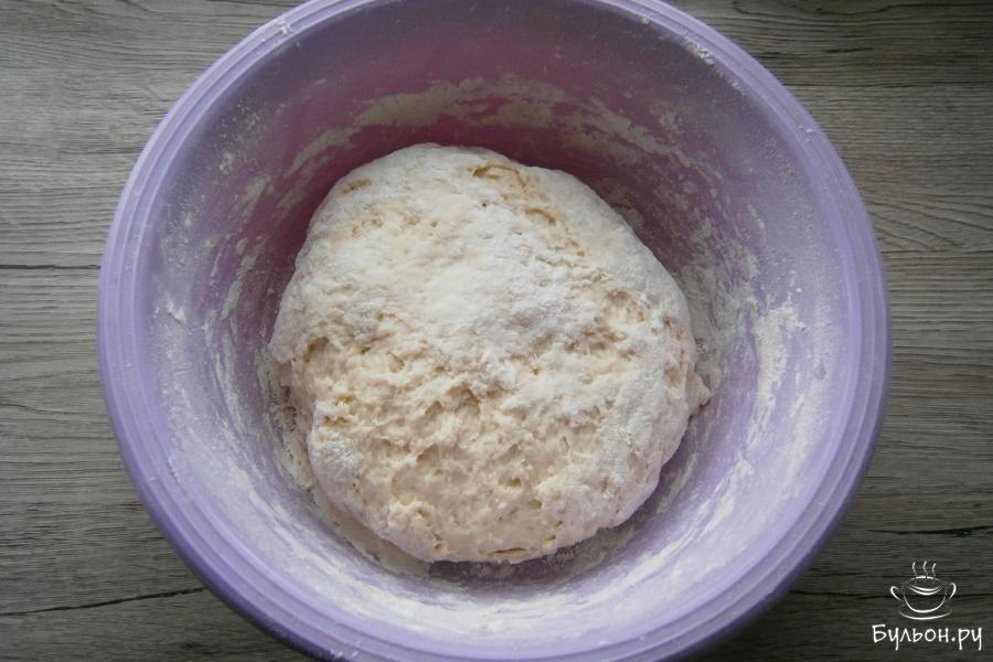 3. Готовое тесто должно получиться мягким и чуточку липким, слишком замешивать его не нужно. Оставить тесто, накрыв пленкой на пол часа.