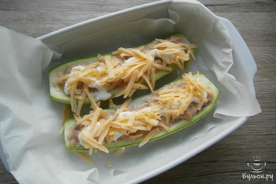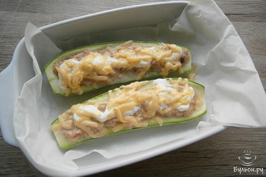 5. Поместить кабачки в разогретый духовой шкаф, выставить температуру 180 град. и запечь около 40-45 мин.