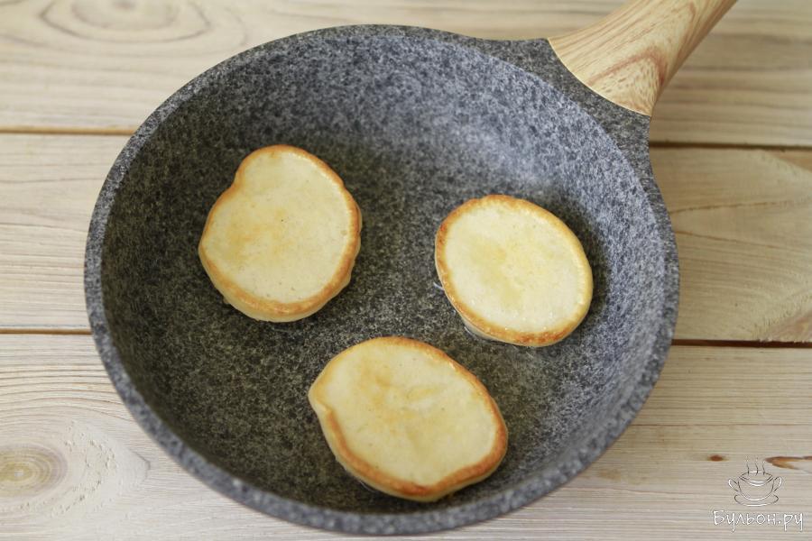 5. Разогреть сковороду, смазать ее растительным маслом. Выпекать оладушки с двух сторон до золотистого цвета на среднем огне.