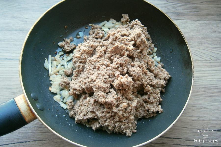 3. Лук порезать произвольными, но не большими кусочками, обжарить с тремя ложками масла растительного до легкой золотистости. Далее, добавить массу из сердца, четвертую часть чайной ложки соли, поперчить, еще немного обжарить. Добавить в сковороду сливочное масло, дать ему разойтись, все перемешать.