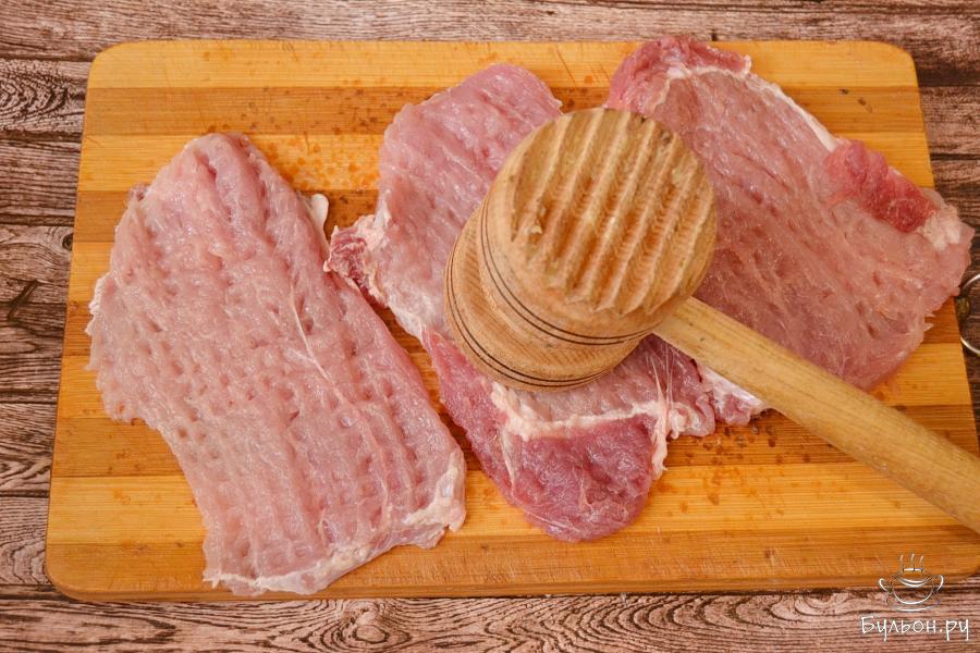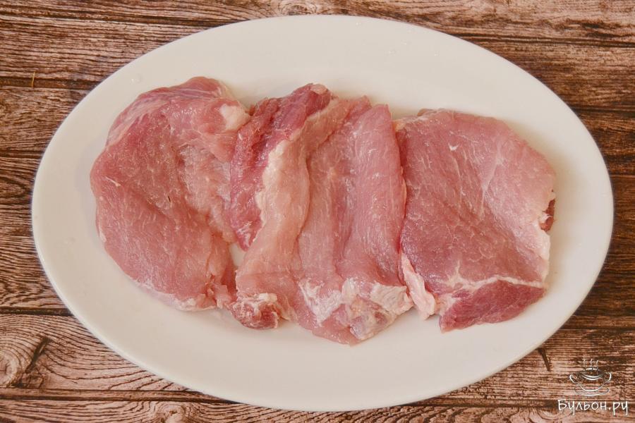 1. Для стейков лучше всего использовать корейку. Это постное мясо, без прожилок и пленок. Хорошо режется, отбивается и держит форму.