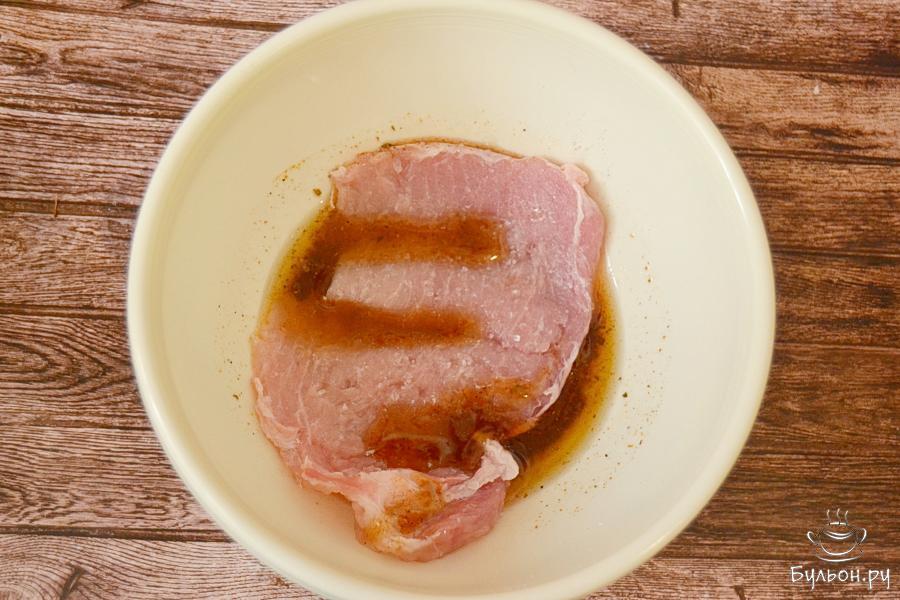 Когда имеешь хорошее мяско, нет проблем из него что-либо приготовить. Даже простое жареное мясо будет необыкновенно вкусным. Но особенно вкусной получается свинина, если предварительно ее замариновать. Мариновать стейки я буду сегодня в соевом соусе со специями, медом и горчицей. Затем недолгий процесс обжаривания, и вкуснейшее мясо готово. Чтобы не заниматься подбором специй, можно взять уже готовые. Я использовала специальную подборку для мяса, которую мне привезли дети из Турции. Получилось неплохо.