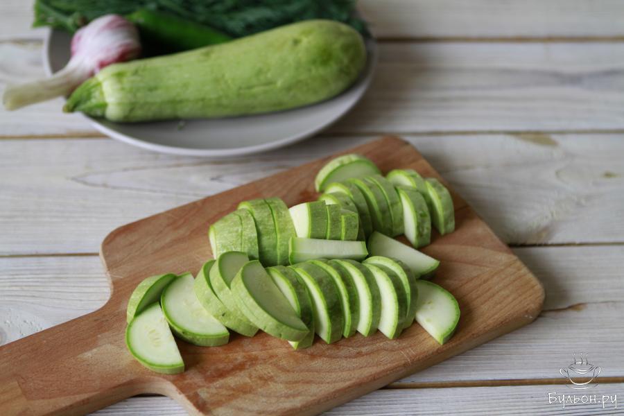 1. Подготовить кабачки. Выбирайте кабачки не крупные. Кабачки промыть, обсушить и порезать. Можно полукольцами или брусочками, как вам удобно.