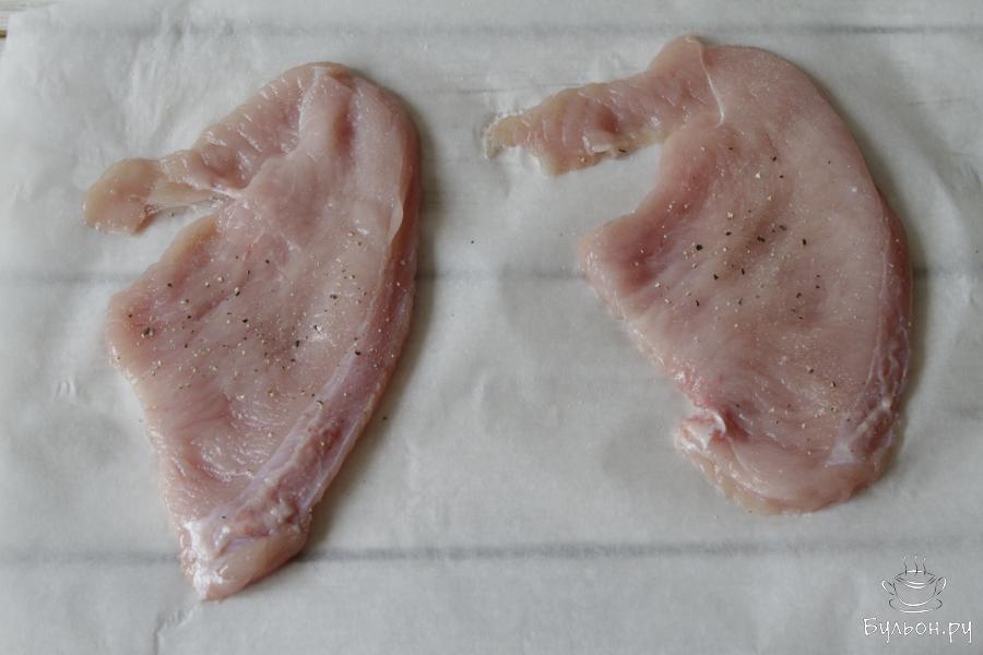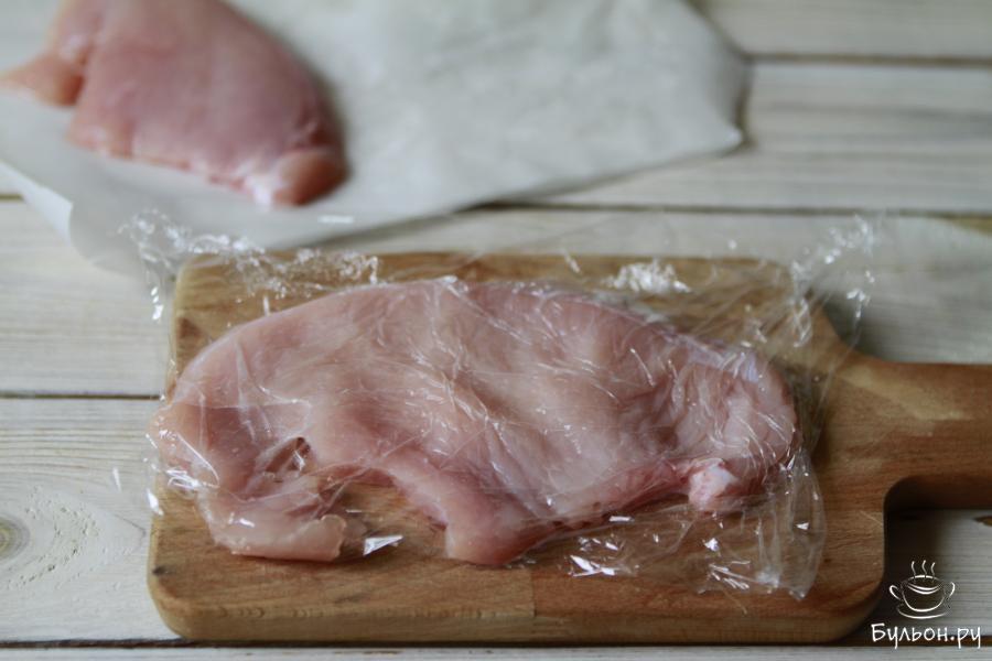 2. Чтобы не повредить кусочки филе, его можно обернуть пищевой пленкой и только потом слегка отбить.