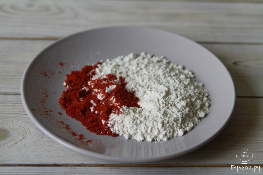 4. В качестве панировки здесь используется цельнозерновая пшеничная мука и сладкая паприка. Оба ингредиента необходимо перемешать друг с другом.