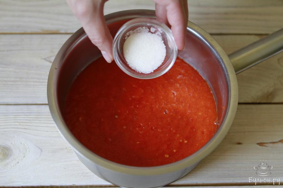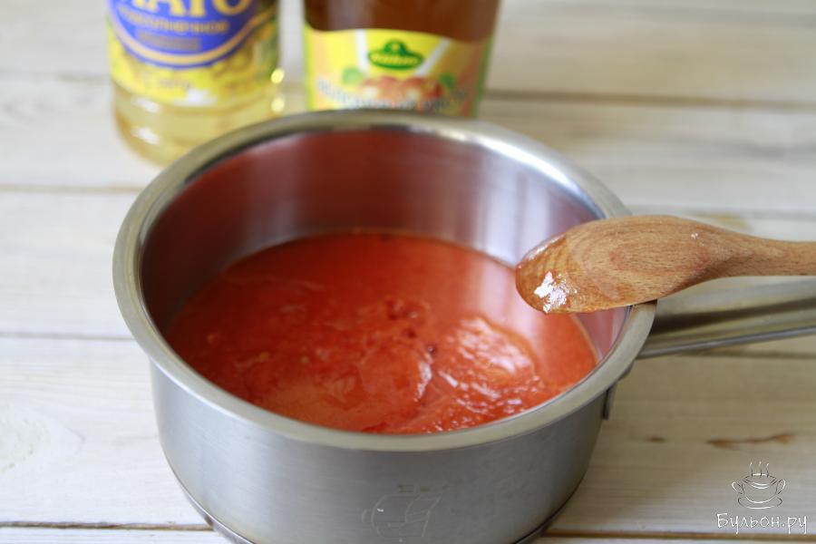 6. Следом добавить растительное масло и яблочный уксус. Отправить на огонь, довести до кипения и уварить айвар на медленном огне 15-20 минут.