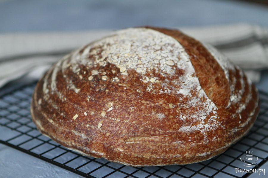 Рецепт ленивого хлеба на закваске довольно простой, правда требует сил и нужно на него время. Название этот хлеб получил неспроста. Все дело в том, что брожение хлеба и его расстойка проводится в холоде раз, а два, заготовки на хлеб не требуют сложения. Так, по сути вам нужно просто смешать все указанные ингредиенты в указанном порядке и выждать время. Ну и главное, заранее подготовить закваску. Рекомендую выпекать хлеб на камне для выпечки, с паром или к примеру в казане, который разогревается в духовке заранее вместе с камнем.