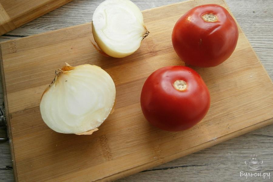 1. Помидоры нужно выбирать спелые, но обязательно твердые. Лук можно использовать и репчатый, и более щадящий - красный крымский или белый.