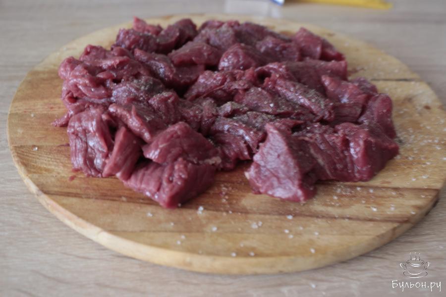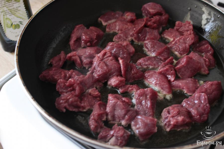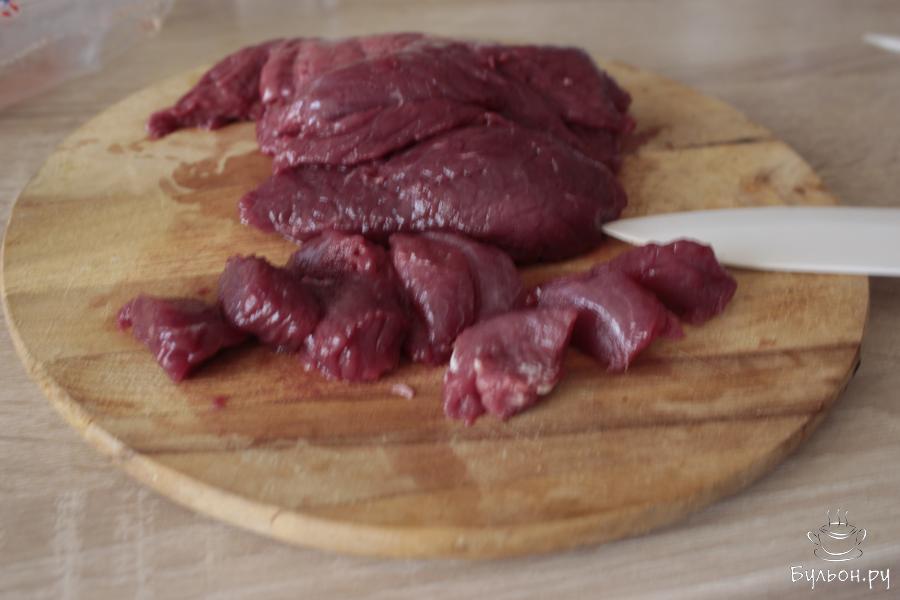 2. Пока готовятся спагетти, займемся приготовлением филе страуса и соуса. Филе страуса порезать небольшими кусочками.