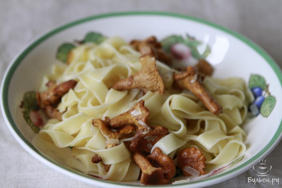 7. Паста Фетучини с лисичками готова. По желанию можно добавить сыр и немного свежей зелени. Приятного Вам аппетита.