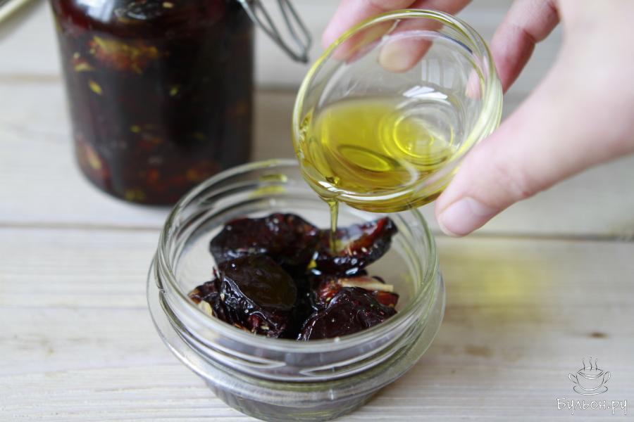 8. Банки простерилизовать удобным для вас способом. Плотно наполнить их сливами. Залить маслом доверху.