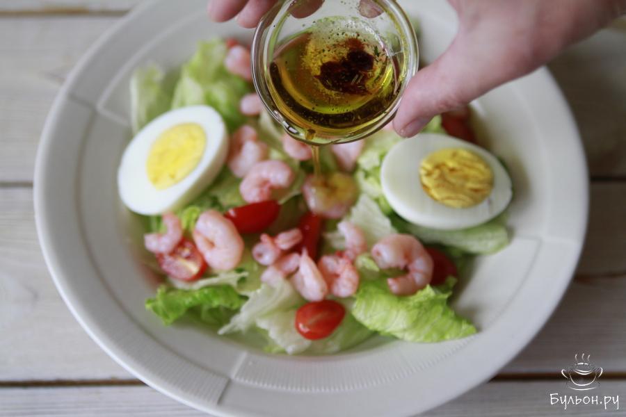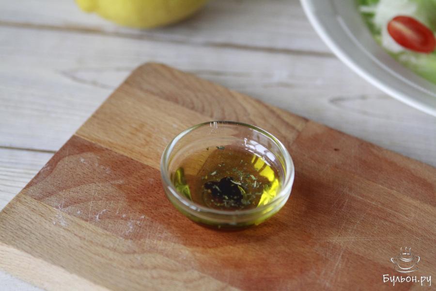 7. Для заправки приготовить оливковое масло, сок лимона, бальзамический уксус и немного прованских трав.