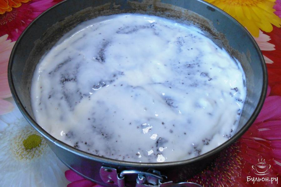 13. Выложить на первый корж кусочки бисквита с кремом и выровнять. Убрать в холодное место на 3-4 часа до застывания.
