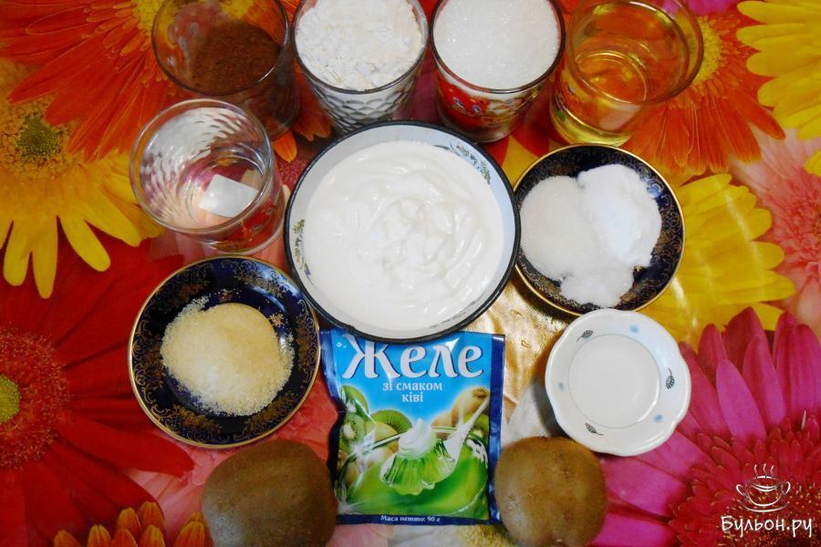 "Crazy cake" это американский пирог, который переводится как "Сумасшедший торт". Его придумали в США в целях экономии продуктов. Пирог готовится на воде и растительном масле без добавления яиц и сливочного масла, но тем не менее, он получается удивительно вкусным. Пористый торт с необыкновенным вкусом и простейшими продуктами. Желатин нужен быстрорастворимый, сметана - высокой жирности. Для украшения выбираем твердые киви и фруктовое желе в упаковке со вкусом киви. Чтобы желе с киви застыло наверняка, киви обязательно нужно обдать кипятком, либо проварить в воде с сахаром до потемнения киви. По желанию можно заменить киви на любимые фрукты и соответственно на фруктовое желе со вкусом любимых фруктов.