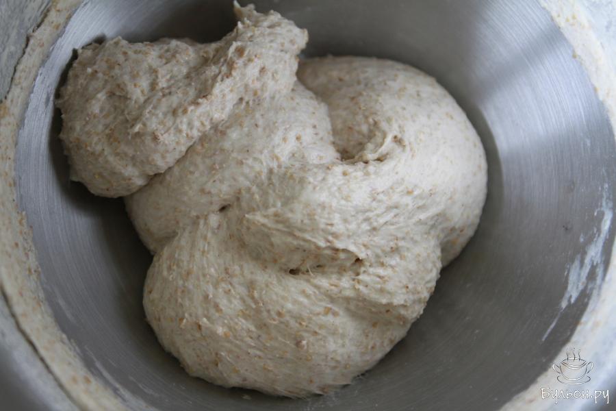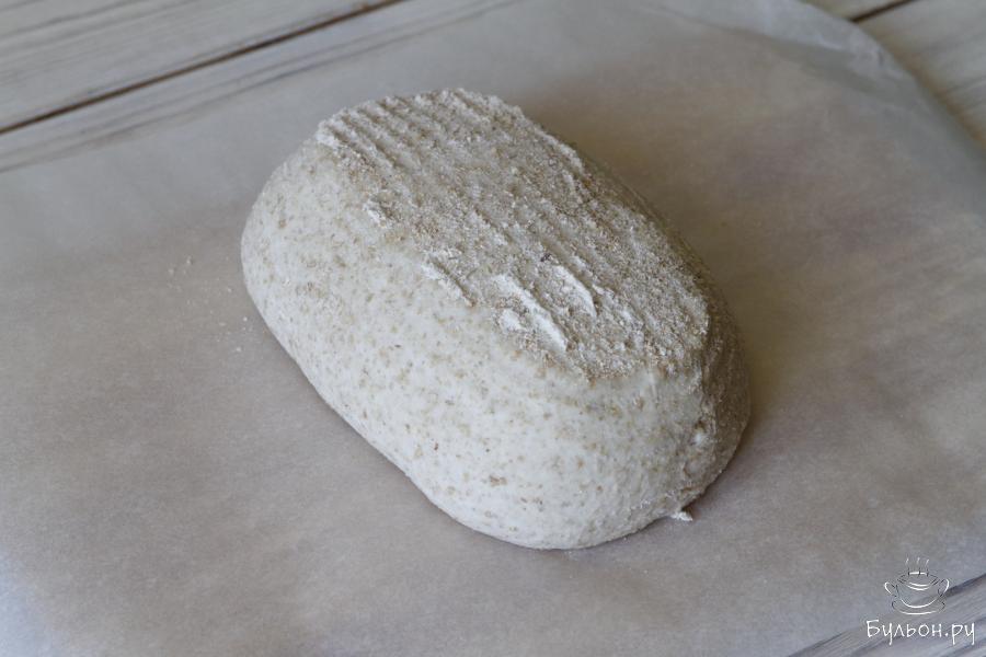 10. Рабочую поверхность слегка присыпать мукой. Тесто растянуть, слегка обмять и сформировать буханку.