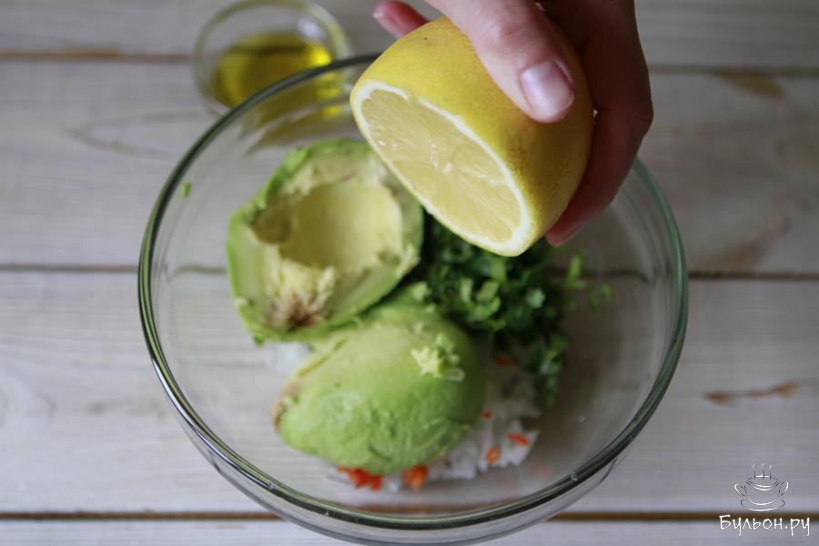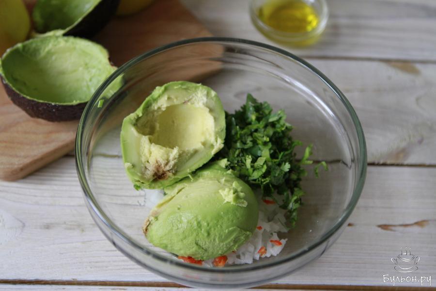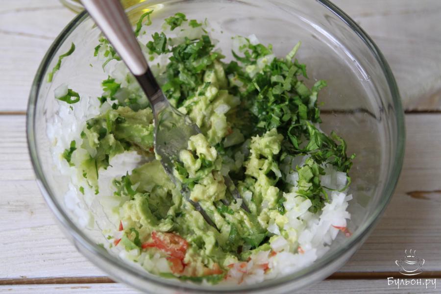 7. При помощи вилки размять мякоть авокадо. Не старайтесь превратить его в идеальное пюре. Если будут попадаться крупные кусочки, будет даже вкуснее.