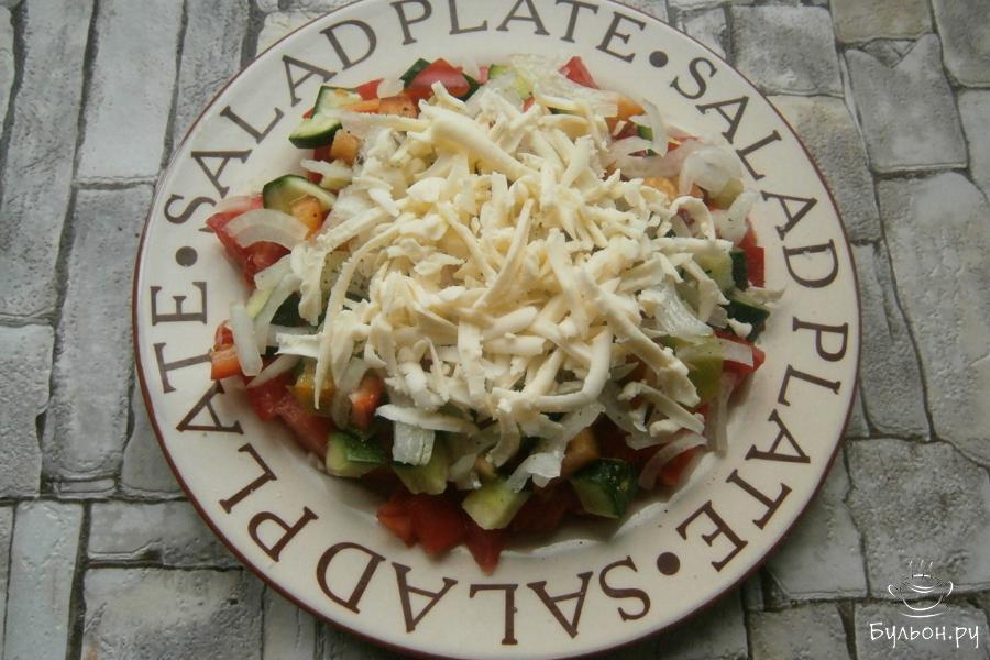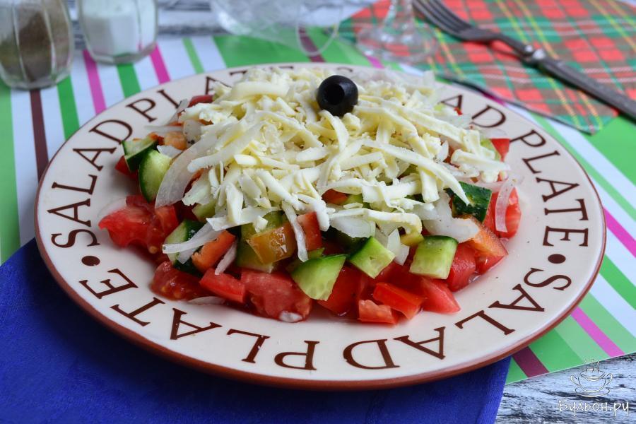 Шопский салат - блюдо яркое и очень вкусное, принадлежащее к болгарской кухне. Пользуется популярностью этот салат и в Сербии, Чехии, Македонии, а также, в России. Шопский салат готовят в основном в летнее время года, так, как продукты для его приготовления используются сезонные, хотя и в зимнее время свежие овощи найти не проблема. Болгарский перец для этого салата можно использовать в свежем, маринованном или запеченном виде - это уж по вкусу. В самой Болгарии чаще всего для Шопского салата выбирают национальный шопский сыр, заменить который можно брынзой или фетой. Порезанные овощи на тарелку выкладывают слоями, сверху посыпают сыром, по-желанию, зеленью и приправляют оливковым маслом. Обязательный атрибут Шопского салата - украшение из черной или зеленой оливки.