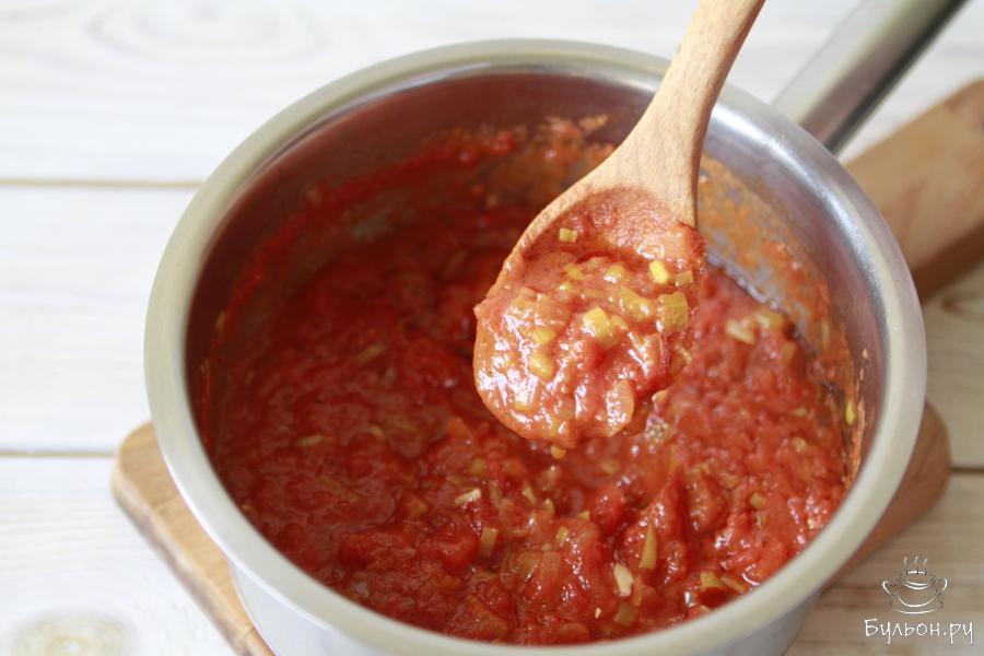 1. Подготовить все ингредиенты по списку. В этом рецепте использовались помидоры в собственном соку, уже очищенные от кожицы.