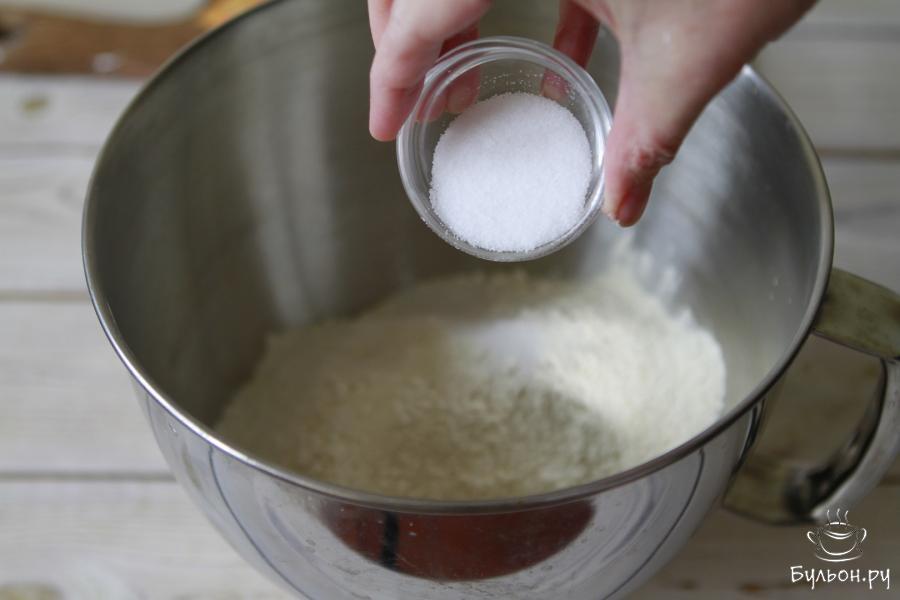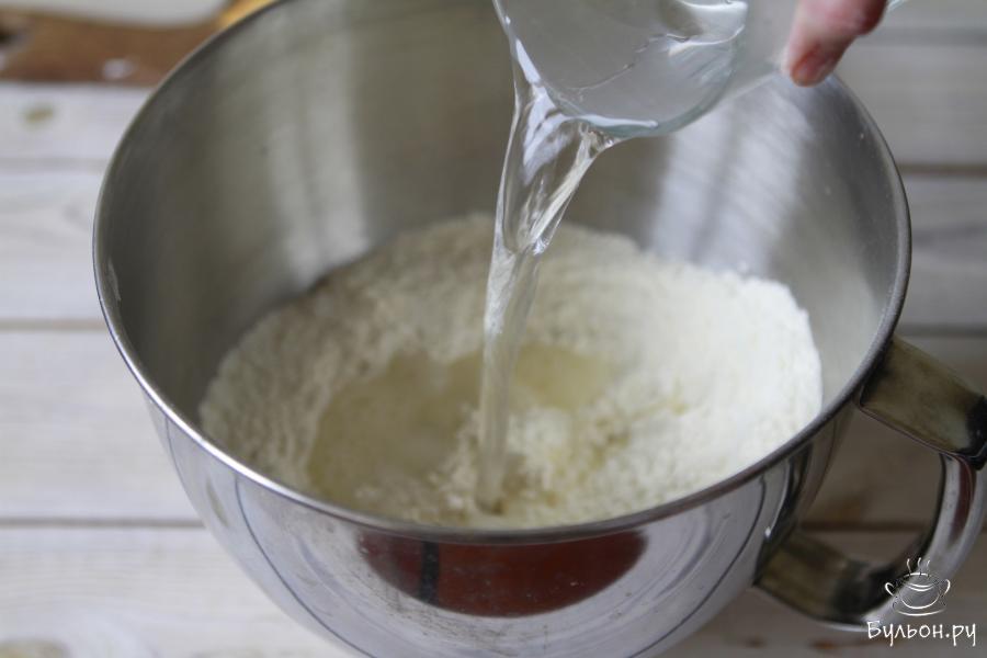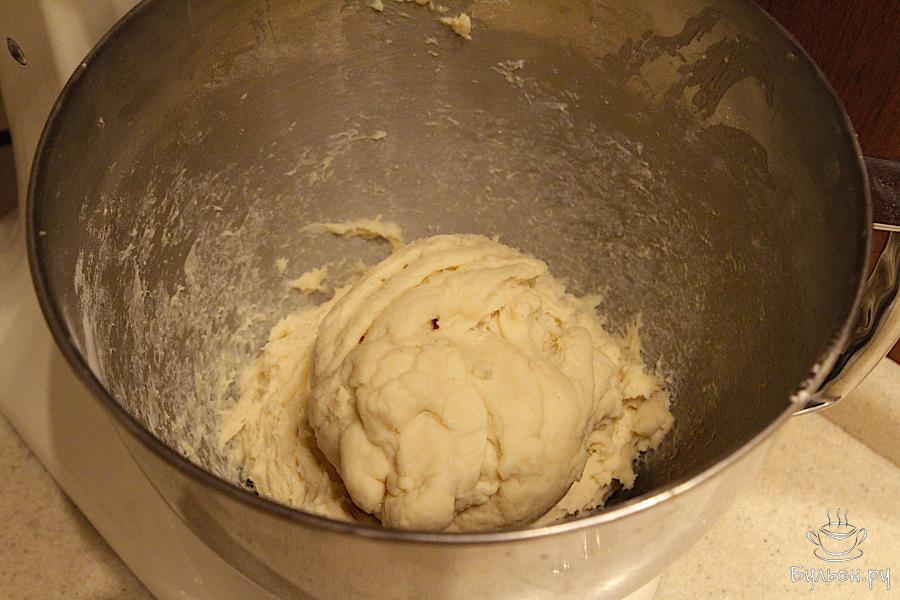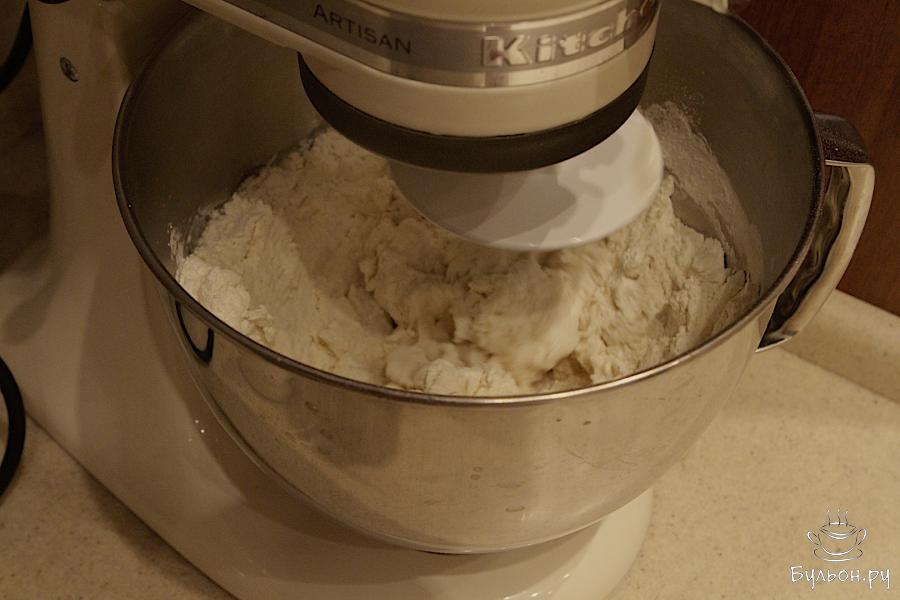 4. На маленькой скорости ( я замешивала тесто венчиком крюк на второй скорости) перемешать все ингредиенты. У меня на это ушло примерно 3-4 минуты.