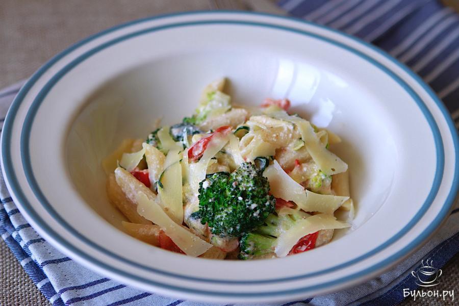 Ох, уж эта итальянская кухня, она сводит сума. Чего только стоит одна паста. Паста с беконом, спагетти болоньезе, спагетти с креветками в сливочном соусе, спагетти с морепродуктами и так можно продолжать до бесконечности. Я обожаю пасту и готовлю ее очень часто. Сегодня делюсь с вами рецептом пасты с овощами и с рикоттой. Овощи с рикоттой получаются сочными и нежными, главное не передержать их на огне. Пасту отваривайте строго по инструкции, чтобы тоже не разварилась. Подавать блюдо желательно сразу же после приготовления. И не забудьте про сыр, лучше всего подходит к пасте пармезан.
