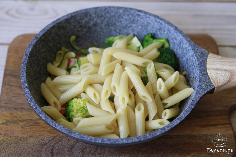 6. Макароны отварить в слегка подсоленной воде согласно инструкции на упаковке. Откинуть их на дуршлаг, жидкость сохранить.