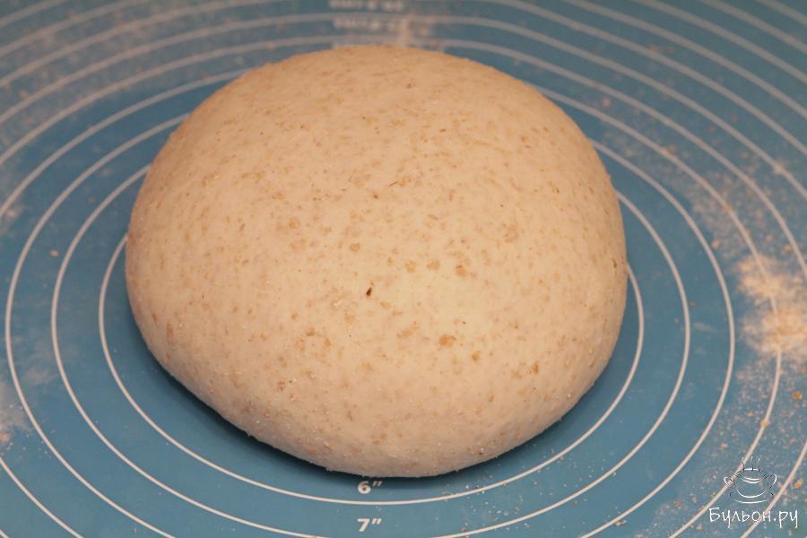 5. Продолжить замес. Я вымешивала на минимальной скорости в течение 10 минут. Тесто должно быть гладким и не липнуть к рукам. Посуду смазать растительным маслом, собрать тесто в шар и оставить тесто на подъем на 2-3 часа.