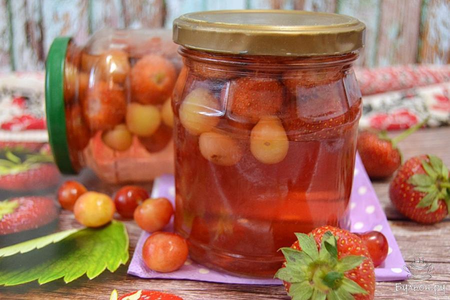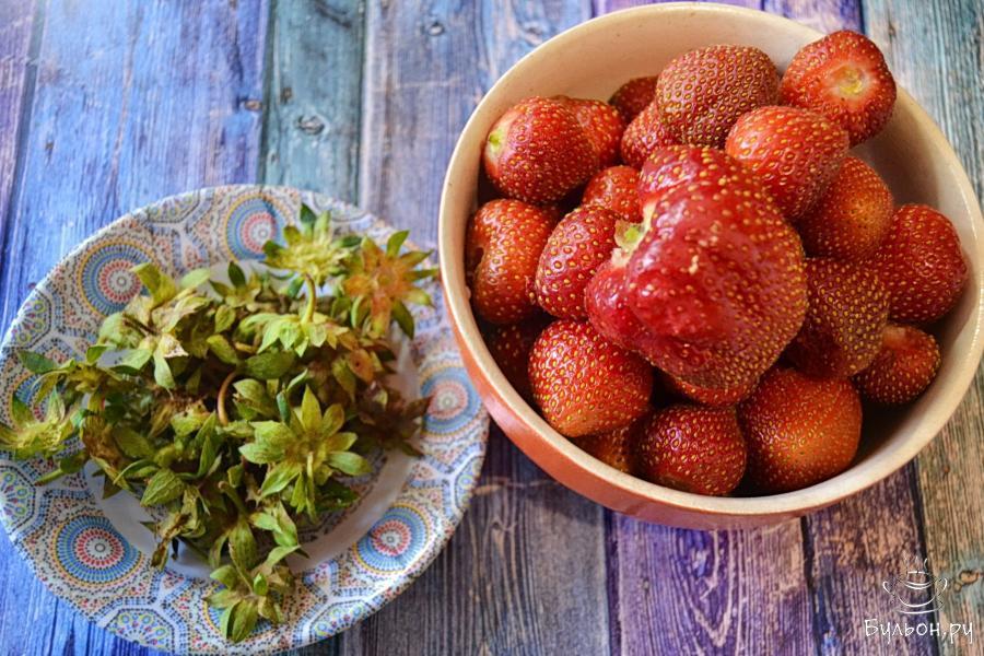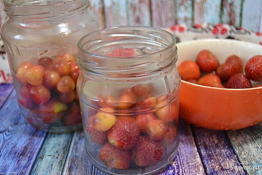 2. С клубники снимем листочки, ягоду промоем. Черешню достаточно просто промыть, косточки извлекать не нужно.