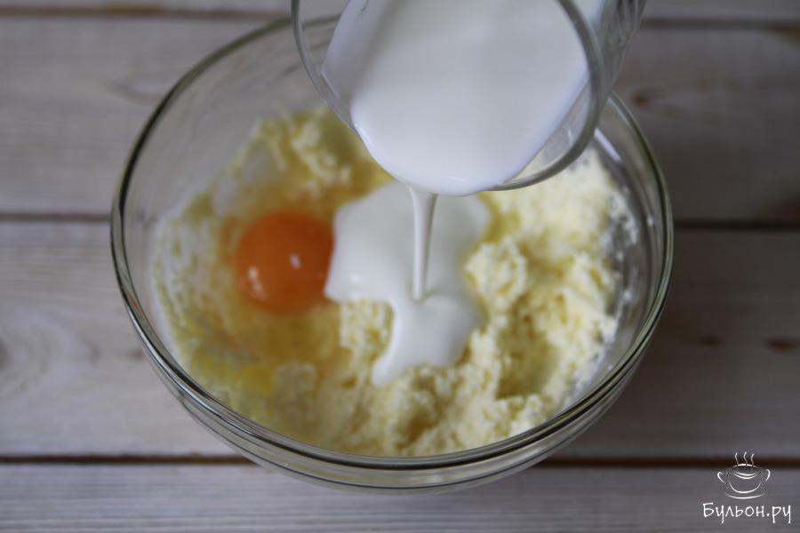 2. За пол часа до замеса достать сливочное масло, оно должно быть комнатной температуры. Масло взбить с сахаром.