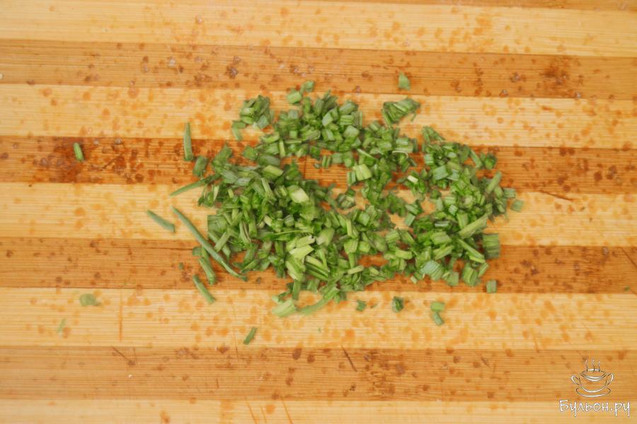 3. Мелко нарежем зеленый лучок. Если есть другая зелень - петрушка, кинза, укроп, то можно использовать и ее.