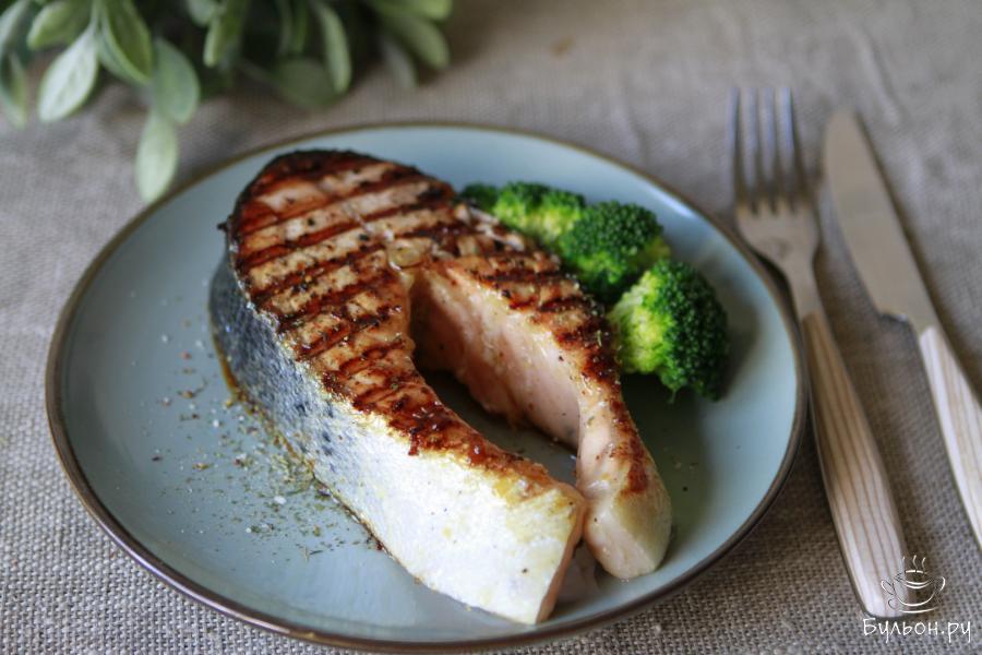 Стейк из форели - сытное, вкусное и вполне диетическое блюдо. Приготовить его можно в духовке или на сковороде-гриль. Мне по душе больше второй вариант. Вариант этого рецепта интересен тем, что в качестве маринада используется кисло-сладкий соус. Кусок рыбы предварительно нужно замариновать и затем приготовить удобным для вас способом. В качестве гарнира можно отварить картофель, приготовить рис или овощи. Мне нравится сочетание рыбы с брокколи.