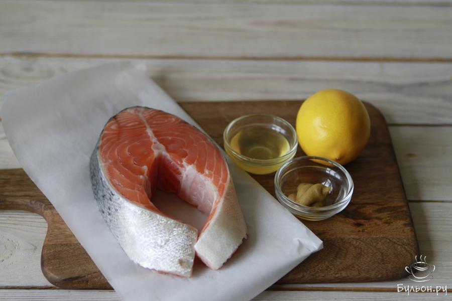 3. В небольшой чаше смешать сок лимона, горчицу, мед и пару столовых ложек оливкового масла. Соус хорошо размешать. Готовым соусом залить филе. В этом маринаде оставить его на 25-30 минут.