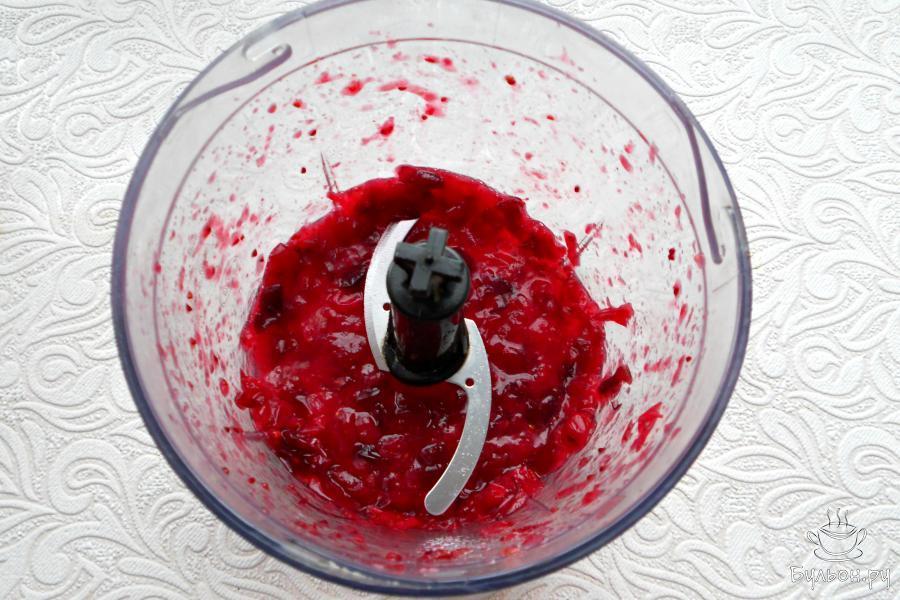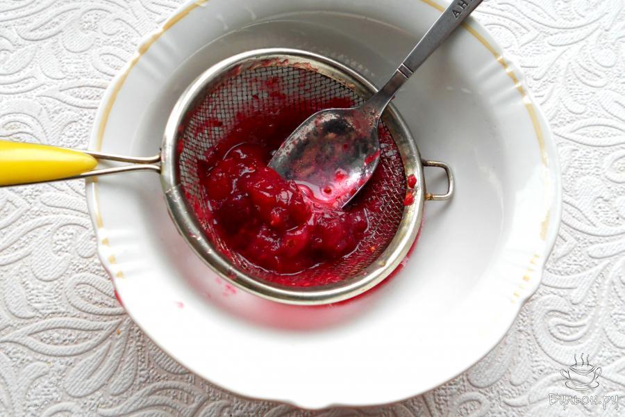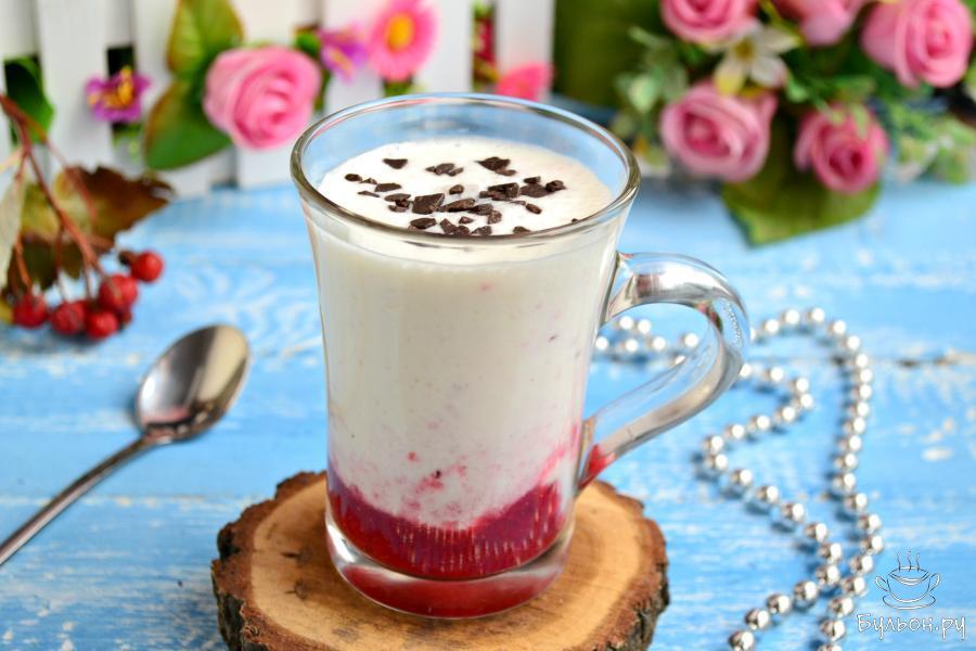 8. Аккуратно вылить коктейль в стакан с клюквенным пюре. Сверху коктейль можно посыпать тертым шоколадом. На вид коктейль получается очень красивым и конечно же - вкусным. Приятного аппетита.