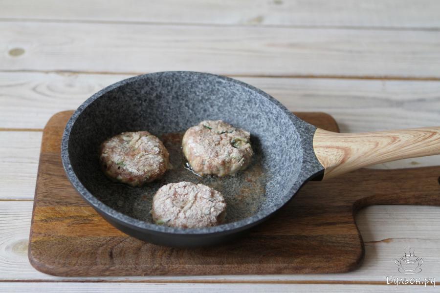 7. Обжарить котлеты с двух сторон до приятной золотистой корочки примерно по 3-4 минуты с каждой стороны. Убавить огонь и пропарить их под крышкой еще пару минут.